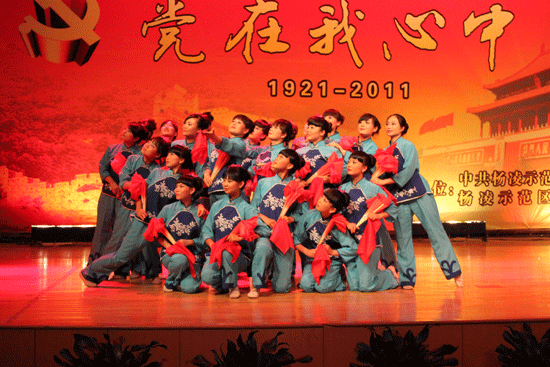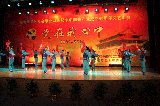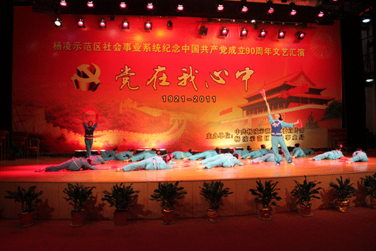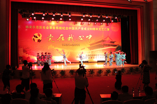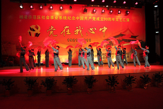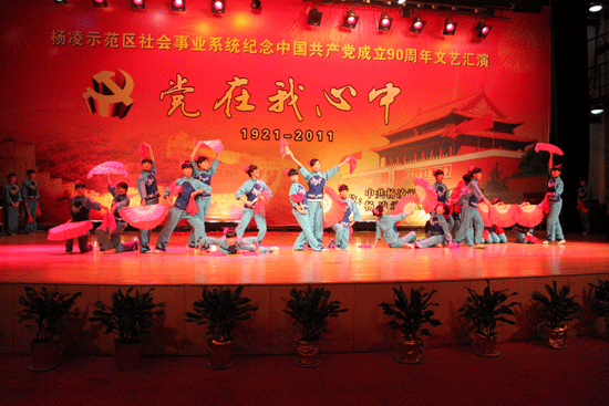 为了隆重庆祝中国共产党成立 90 周年,回顾党的光辉历程,讴歌党的丰功伟绩,弘扬党的优良传统, 2011 年 6 月 24 日下午 3 点 ,在杨凌国际会展中心三楼演播大厅,由中共杨凌示范区党委,杨凌示范区社会事业局主办的纪念中国共产党成立 90 周年“党在我心中”文艺汇演隆重举行。