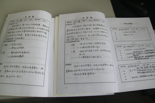 在家校联系方面,“全员育人导师制”建立了定期和不定期的电话联系、家长面谈及召开家长会等制度。学校要求,导师每月至少与受导学生家长联系一次,每位导师必须对受导学生本人及其家庭有清晰地了解,对其家庭情况简要分析,密切与家长联系,共同探索有利于促进孩子健康成长的有效方法,及时与学生家长沟通,帮助和指导家长改进家庭教育方法。王忠俊主任介绍说:“现在导师经常利用晚自习或者其他一些空闲时间开小型的家长会,讨论孩子的问题。家长也能通过导师和成长手册,掌握自己孩子的思想动态。”