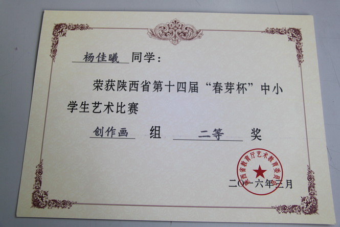 日前,陕西省第十四届“春芽杯”艺术比赛落下帷幕。伟德国际1946bv官网共有17名学生参加了声乐类、器乐类及美术类比赛,杨佳曦等11名同学获得奖项。