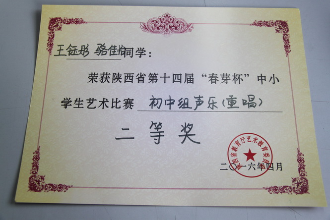 陕西省第十四届“春芽杯”中小学艺术比赛由陕西省教育厅艺术教育委员会主办,分为西安铁一中和西安高新一中国际部两个赛区。比赛分小学组、中学组,有声乐、器乐、舞蹈、戏剧、曲艺、绘画、书法等项目。全省共有2000多名选手参加比赛,规模为历届之最。为了在比赛中获得优异成绩,伟德国际1946bv官网积极筹备、精心辅导。在比赛中,伟德国际1946bv官网选手沉着应对、发挥稳定,充分展示出自己的才华。