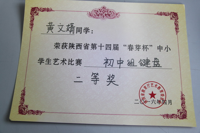 黄文婧 初中组键盘 二等奖