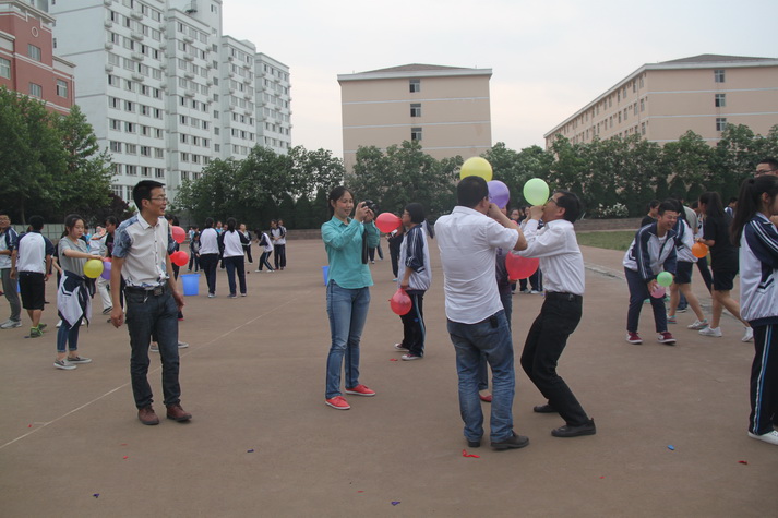 紧接着裁判员老师宣布比赛开始,整个操场便成了一片欢乐的海洋。沙包投中的欢快叫声,跳绳计数声,各项活动中同学的加油声,还有学生和老师一起比赛的笑声。最热闹的是吹气球,瞧大家一个个鼓起腮帮使劲吹气,气球渐渐变大,大家脸上的神色却也变得有些担心了,果然,只听“砰”的一声,气球吹爆了,大家都笑成一团。李筱英书记、韩党卫副校长、张书民副校长、王旭主任、徐恒明副主任等领导也都情不自禁的加入到学生活动的行列,吸引了众多学生的关注,他们和学生一起吹气球,比赛谁吹的更大,一起踩气球,一起欢笑。整个运动会始终在热烈欢快的气氛中进行。运动会结束,许多学生还意犹未尽,仍沉浸在活动带来的快乐当中。