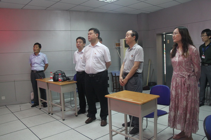 魏建锋一行首先视察了高考试卷保密室,然后前往伟德国际1946bv官网考点监控室视察高考监控系统和语音播放系统的运行准备情况,并详细了解了考场设置、听力设备、网络控制和考场周边环境等。在听完伟德国际1946bv官网负责人的汇报后,魏建锋指出,高考准备工作一定要仔细考虑每个细节,一要高度重视,严格按照高考的操作流程规范操作,确保整个高考的顺利进行;二要以人为本,一定要为考生着想,方便考生,围绕为服务考生做好各项工作,为考生创造一个良好的考试环境。