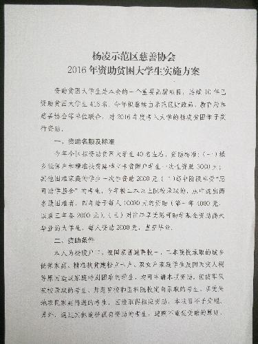 杨凌示范区慈善协会2016年资助贫困大学生实施方案
