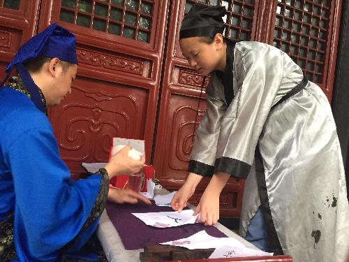 7月30日,2016届初三部分优秀毕业生来到了国子监和孔庙。在这里,孩子们参观了古代的最高学府和中国古代伟大的教育家孔子之庙。国子监和孔庙的庄严肃穆以及历代皇帝对教育的重视。“百年大计教育为本”今天在这里又一次证明。孩子们在这里还参加了入泮礼。这是一个相当庄严的入学大礼。在中国有句古话:“入泮宫,出学府,上青云路。”在古代是在州县考中秀才的童生们做生员时的入学大礼。