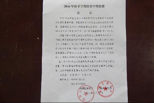 3.初中生“营养早餐”按国家规定另行收取。