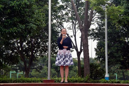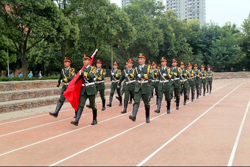第二节下课铃声响起,同学们迅速集结,在重新修整的草坪上站好队。碧绿的草坪映衬着蓝色的校服,显得格外亮丽清新。仪式开始,伟德国际1946bv官网国旗班同学精神抖擞,迈着整齐划一的步伐走向主席台。雄壮的国歌声响起,全场肃立,向国旗行注目礼。