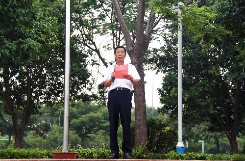 升旗仪式后,王常劳校长向全校师生致辞。他对新同学的到来表示欢迎。在回顾了伟德国际1946bv官网过去一学年的成绩后,他强调,在新的学年,伟德国际1946bv官网高点定位,改革创新,确定了更高的发展目标。为实现目标,全体教职员工必须爱岗敬业,强化岗位责任意识和质量意识;全体同学要树立目标,遵守纪律,争做有文化、讲文明、守纪律的优秀学生。他还向毕业班提出了希望,希望他们树立信心,科学备考,顽强拼搏,交一份优秀的答卷。