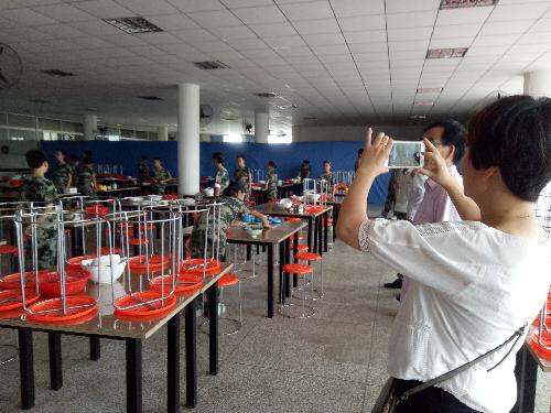 30日,学校邀请学生家长代表到军训基地参观学生的军训场所和训练面貌,感受军训的氛围。各位家长到训练场观看学生的训练,并参观了学生宿舍、食堂等,对于学生的训练面貌和食宿条件都感到满意,更对孩子们经过军训后的面貌非常期待。