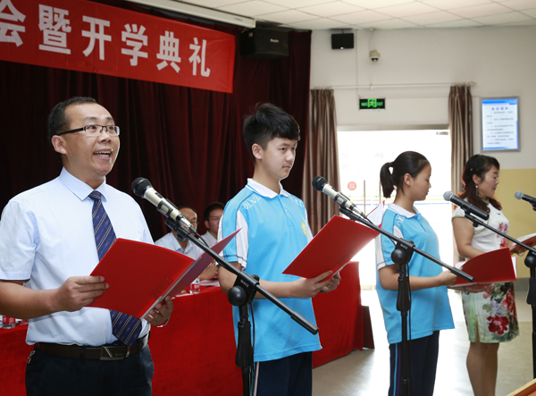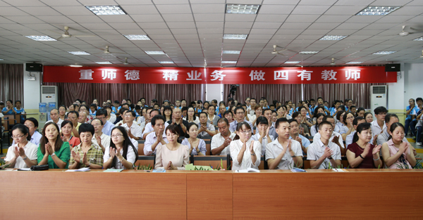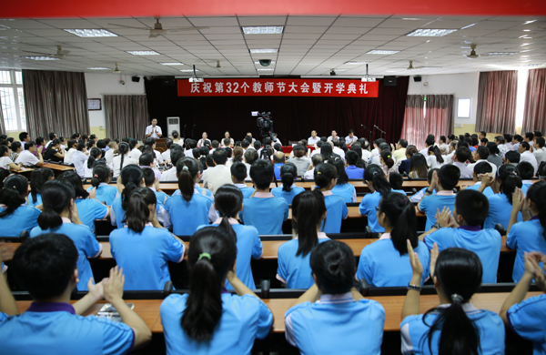 附中王常劳校长讲话、李筱英书记主持庆祝第32个教师节大会暨开学典礼