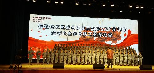 为庆祝教师节,9月9日,杨凌示范区教育局在西北农林科技大学北绣山活动中心隆重举办“杨凌示范区教育系统庆祝第32个教师节表彰大会暨教职工歌咏比赛”。